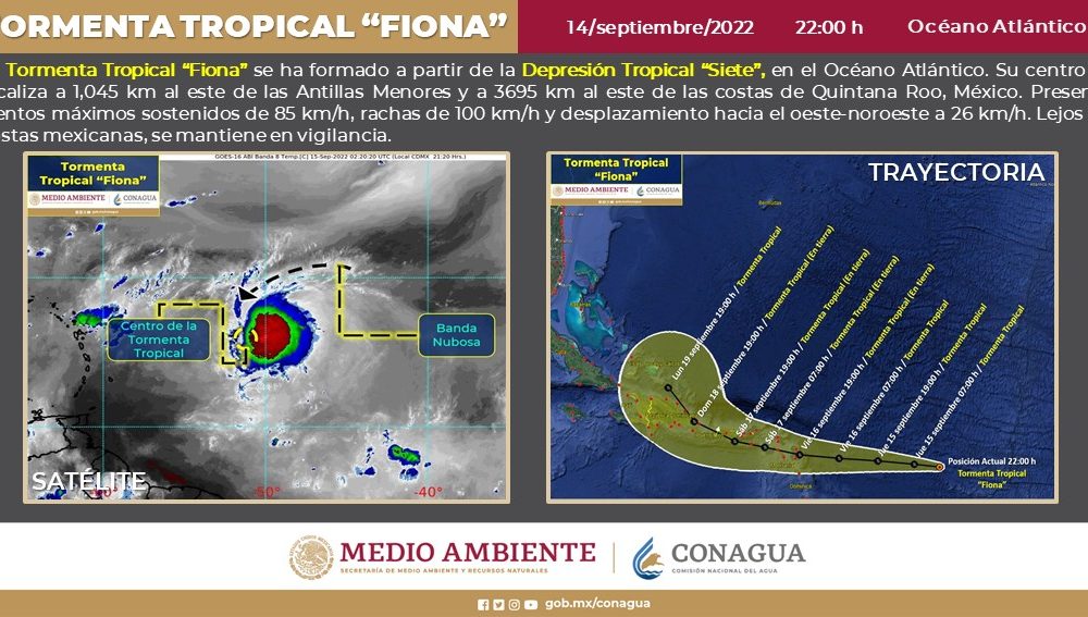 Ciudad de México.- A las 21 horas de este miércoles se formó la tormenta tropical Fiona sobre el océano Atlántico. Se localiza a mil 45 km de las Antillas Menores...
