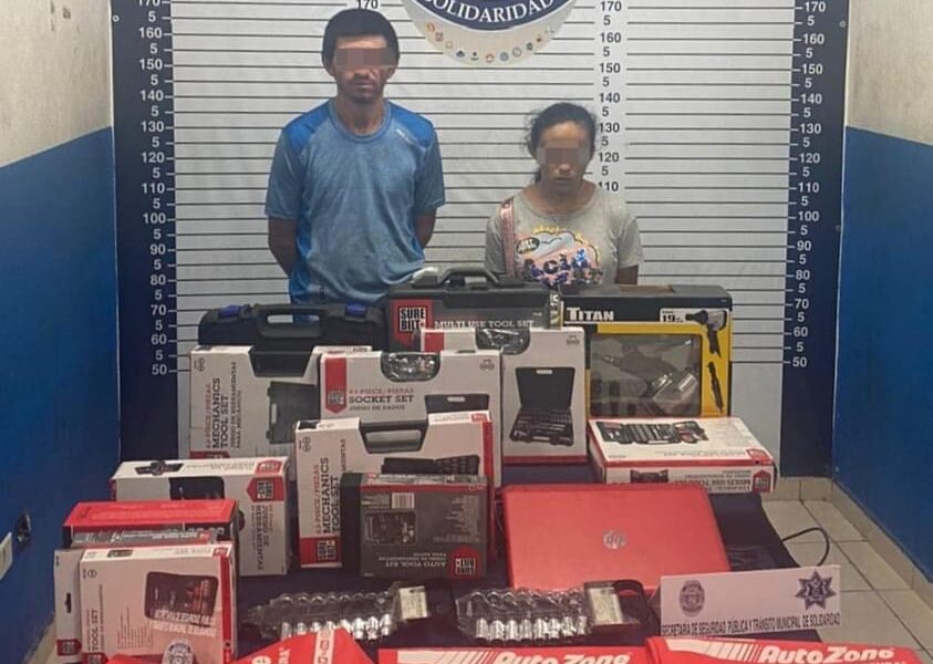 Playa del Carmen.- Policías de Solidaridad aseguraron a dos personas por la posible comisión del delito de robo a comercio; tenían en su posesión varios artículos...