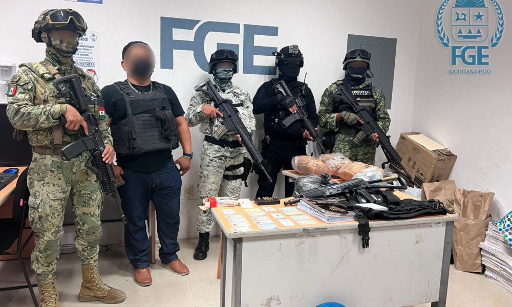 Playa del Carmen.- Durante el operativo Playa Seguro, se realizó el aseguramiento de 2 sujetos en posesión de 2 réplicas de armas, 11 bolsitas con posible...
