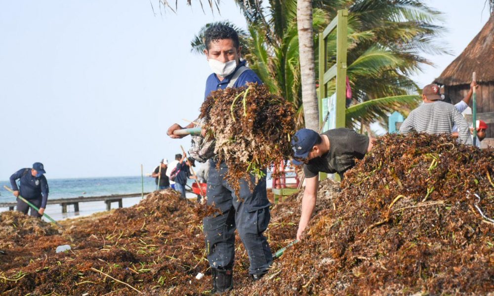 PUERTO MORELOS.- Continúan las intensas labores de limpieza en las playas de Puerto Morelos para retirar las toneladas de sargazo que dejó a su paso la...
