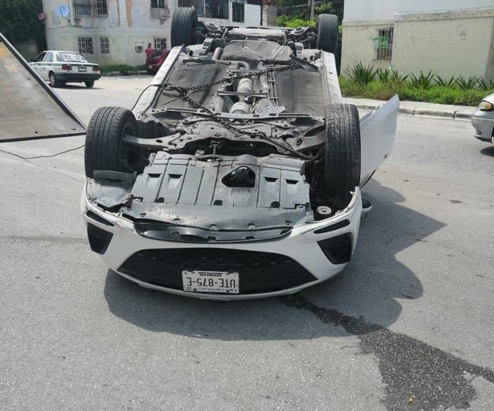 CANCÚN.- Un vehículo particular terminó volcado ante la falta de pericia del conductor. En hechos registrados la tarde de este miércoles en la calle 8 Poniente...