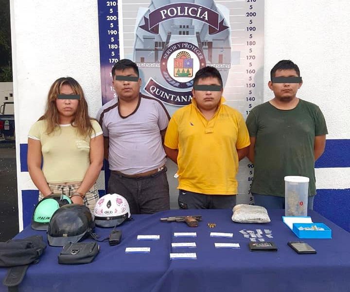 TULUM.- Cuatro personas, tres hombres y una mujer, quedaron a disposición de las autoridades al ser descubiertos en pleno intercambio de droga en el Fraccionamiento “Las...