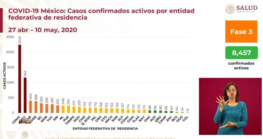 CDMX.- La Secretaría de Salud informó que hasta el corte de hoy, 10 de mayo de 2020, en México suman 35 mil 022 casos confirmados acumulados...