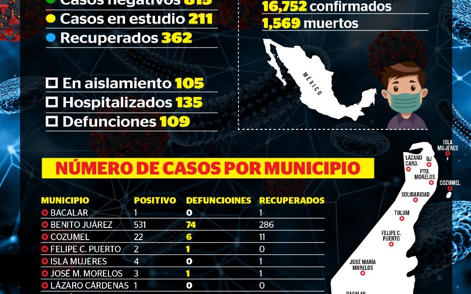 CHETUMAL.- La Secretaría de Salud anunció este día que se incrementaron a 109 las defunciones en el estado. De acuerdo al reporte de este día, se...