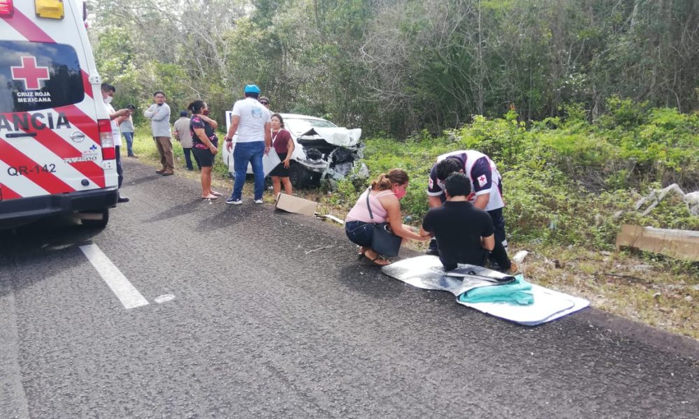 FELIPE CARRILLO PUERTO.- Un accidente carretero se registró en el tramo federal Reforma Agraria-Puerto Juárez, en el que un vehículo compacto con tres personas a bordo...