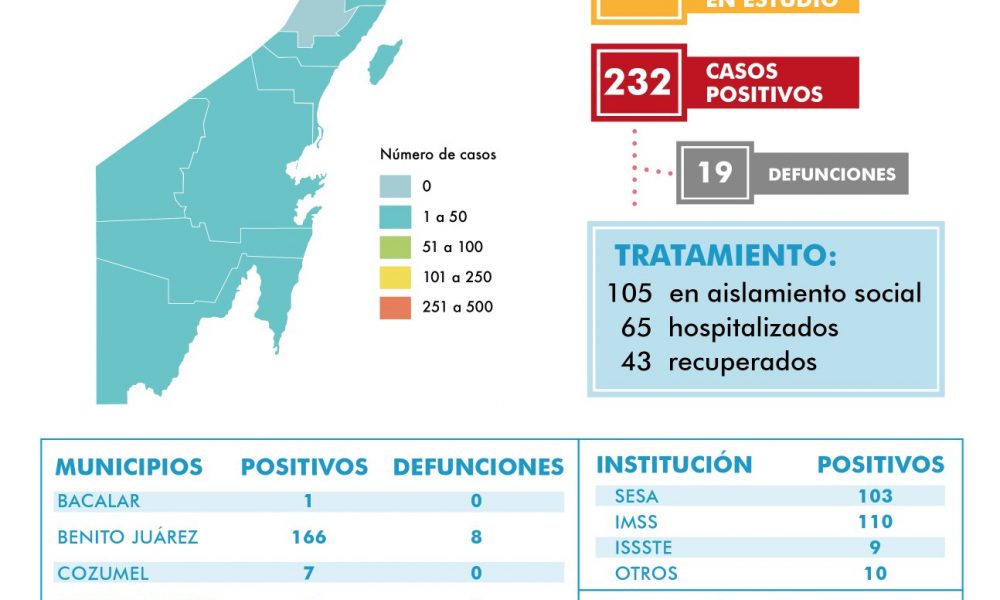 CHETUMAL.- La Secretaría de Salud, a cargo de la doctora Alejandra Aguirre informó que suman 19 personas fallecidas por coronavirus en el estado, mientras que se...